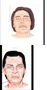 患者两周前感冒后,出现四肢无力,以近端为主,入院查体发现如图所示双侧额纹消失,鼓腮、吹气不能此体征称为_____________。最可能的诊断为_____________,如行腰穿脑脊液检查最可能的发现为_____________