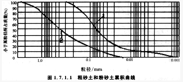 河床表层为粗砂层,下伏粉砂层,粗砂土和粉砂土累积曲线如图1.7.1.1所示,试判别在坝下水平渗流作用下和下游垂直渗流作用下的渗透变形为()。