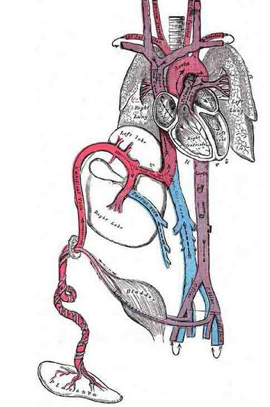 正常胎儿血循环如图,下列哪一部位血氧含量最高()