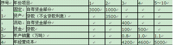 项目计算期10年,其中建设期2年。项目第3年投产,第5年开始达到100%设计生产能力。