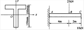 图示T字形截面的悬臂梁z轴为横截面的形心轴Ix=108mm4,其梁中的最大拉应力为()