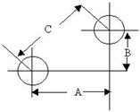 计算题:如图示两孔中心直接距离C=80mm,横向距离a=50mm,求纵向距离b=?