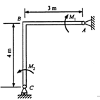 图示平面直角弯杆ABC,AB=3m,BC=4m,受两个力偶作用,其力偶矩分别为M1=300N•m、M2=600N•m,转向如图所示。若不计杆重及各接触处摩擦,则A、C支座的约束反力的大小为()。