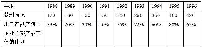 设在经济特区的某中外合资经营企业是产品出口企业,1988年开业经营,经营期20年。该企业1988年至1996年获利情况及出口产品产值与企业全部产品产值的比例如下表:
