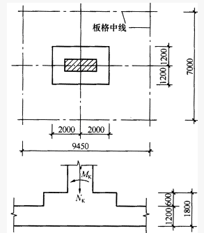 某高层建筑的平板式筏形基础,如图所示,柱为底层内柱,其截面尺寸为600mm×1650mm,柱采用C60级混凝土;筏板采用C30级混凝土(f1=1.43N/mm2),相应于作用的标准组合时的地基净反力为220kPa。相应于作用的标准组合时的柱子轴压力为13000kN,弯矩为180kN·m。筏板厚度为1.2m,局部板厚为1.8m,取aS=50mm。基本组合由永久作用控制。