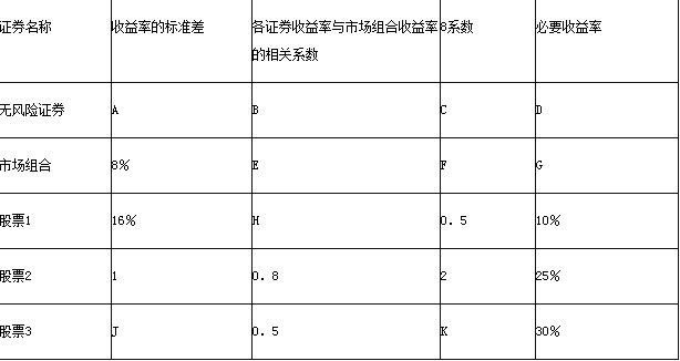 假设资本资产定价模型成立,表中的数字和字母A~K所表示的数字相互关联。