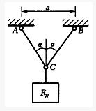 [单选题]在A、B两点连接绳索ACB,绳索上悬挂重物Fw,如图所示。点A、B的距离保持不变,绳索的许用拉应力为[σ]。试问:当α角取何值时,绳索的用料最省?()A . 0°B . 30°C . 45°D . 60°
