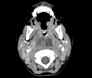 [多选题] 10个月大的婴儿,发热,曾患中耳炎,CT扫描如图所示,请选择正确的描述或诊断()A . 咽后壁软组织肿胀B . 其内密度不均C . 颈椎骨质未见明显异常D . 考虑为咽后壁脓肿E . 考虑为咽后壁寒性脓肿