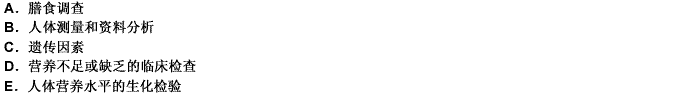 [多选题]营养状况的测定和评价,一般是通过( )来进行综合评价的。A.膳食调查B.人体测量C.遗传因素D.人体营养水平的生化检验E.营养不足或缺乏的临床检查