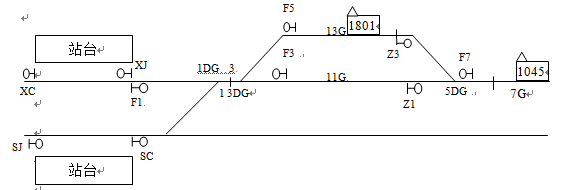 [问答题] 如图所示,为13#线控制台,站间闭塞条件下,根据调度指示,办理1801次列车出库(13G)放空回段,值班员将F5-XJ进路排通后,3D.G突然出现红光带,请叙述1801次列车出库进路办理过程及后续列车(经11G运行)的接车进路办理过程。(不需叙述改变闭塞办理过程)