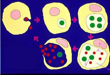 如图为衣原体在宿主细胞中的生长发育示意图,图中1~4分别指的是()