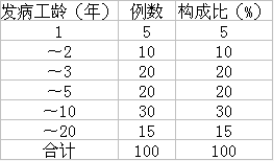 某石英粉厂100例矽肺的发病工龄分布如表所示: