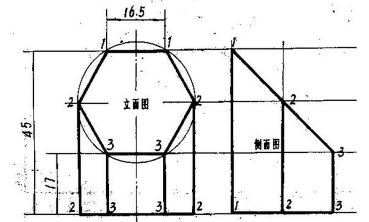由如图所示的45°斜截六角管的平面图和立面图,做出其展开图。