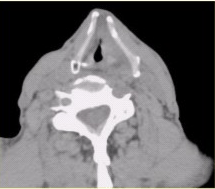 患者男,60岁,声音嘶哑半年,CT表现如下图。