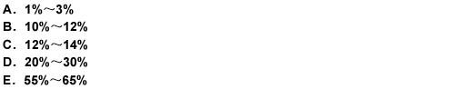 [单选题,B1型题] 儿童蛋白质提供热能占总热能()A . 1%~3%B . 10%~12%C . 12%~14%D . 20%~30%E . 55%~65%