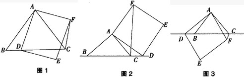 在三角形ABC中,∠BAC=90°,AB=AC,若点D在线段BC上,以AD为边长作正方形ADEF,如图1,易证∠AFC=∠ACB+∠DAC。