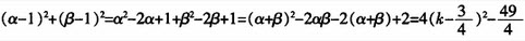 设α、β是方程x2-2kx+k+6=0的两个实根,则(α-1)2+(β-1)2的最小值是()。