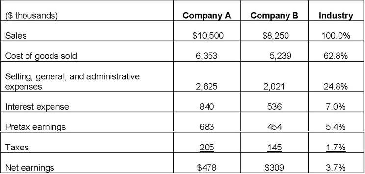 [单选题]Income statements for two companies (A and B) and the common-sized income s