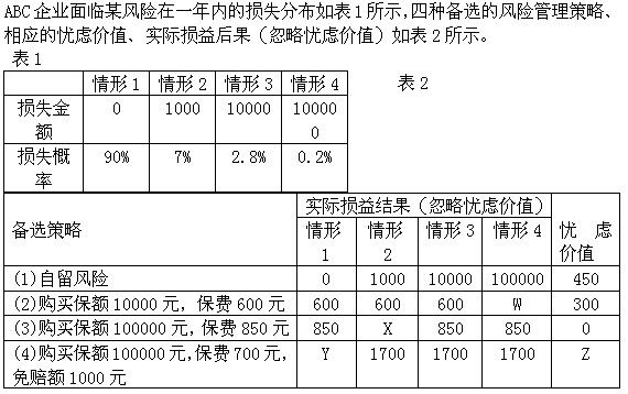 [B单选题]在忽略忧虑价值的情况下,表2中的Y等于()元。A.600B.700C.850D.1000