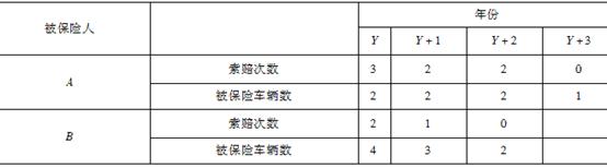 [单选题]假设有两个被保险人A和B,他们在过去四年的损失数据如表所示。应用Bühlmann-Straub模型估计A和B被保险人的年期望索赔频率为( )。表 被