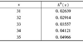 [单选题]已知样本观察数据如表所示。如果样本来源于Gompertz分布,已知该分布的危险率函数为:h(x)=Bcx(x≥0,B>0,c>1)使用最小二乘法估计参