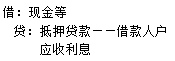 [单选题]银行拍卖抵押品时,当净收入高于贷款本息时应编制的分录是()A . 借:现金等 贷:抵押贷款—借款人户应收利息 应收利息 利息收入 利息收入B . 借:现金等 贷:逾期贷款—借款人户C . 借:现金等 贷:逾期贷款—借款人户 应收利息 应收利息D . 借:现金等 贷:抵押贷款—借款人户