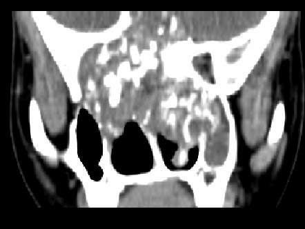 [多选题]男性,28岁,因鼻塞、头痛1年余,鼻窦CT扫描如图所示,请选择正确的描述与结论()A.双侧上颌窦、筛窦、鼻腔及蝶窦内见软组织肿块影B.肿块内密度不均,