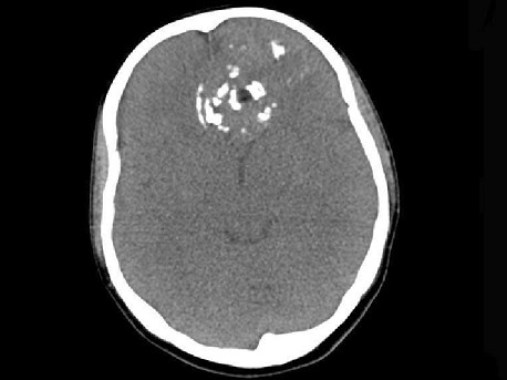 [多选题]男,57岁,睡觉打鼾,近来加重,CT扫描如图所示,正确的描述或诊断是()A.鼻咽腔偏右侧可见类圆形软组织块影B.肿块内密度尚均匀,其上方见较多钙化影C
