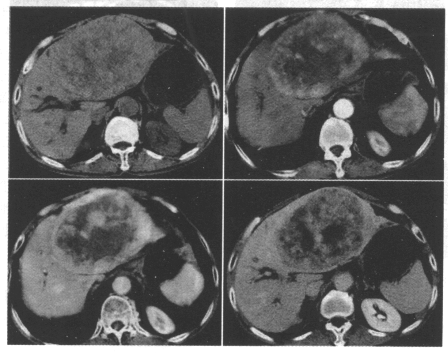 [单选题]男,69岁,肝区疼痛,消瘦乏力三月余,CT检查如图,请作出最可能诊断()A.肝囊肿B.肝脓肿C.肝血管瘤D.肝转移瘤E.巨块型肝癌