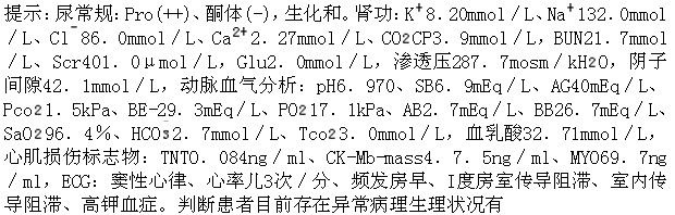[多选题]患者,男性,57岁。因昏迷2小时入院。慢性肾小球肾炎病史16年,慢性肾功能不全(氮质血症期)、肾性高血压半年余,糖尿病(2型)3年。院外口服卡托普利(