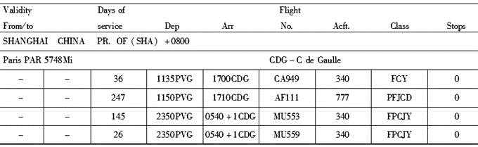 参照航班时刻表,10月16日适用的前往巴黎的航班有()。