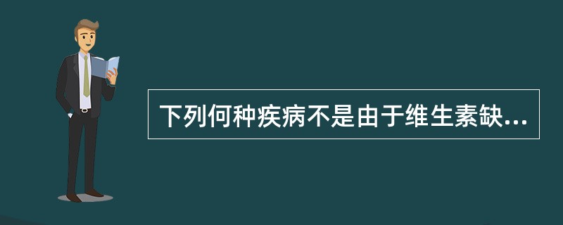 [单选题]下列何种疾病不是由于维生素缺乏所引起的()A .脚气病B .佝偻病C .坏血病D .癞皮病E .硬皮病