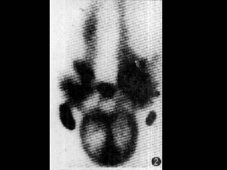 [多选题] 男,26岁,1年前发现左侧腹股沟肿胀伴疼痛,后渐感阴囊肿大,行走不便。行99Tcm-DX显像如图,对此描述正确的是()。A . 左侧腹股沟淋巴结及阴囊肿大B . 阴囊乳糜样囊肿C . 阴囊放射性浓集,中间稀疏区为睾丸D . 大致正常的影像E . 右侧腹股沟淋巴结肿大