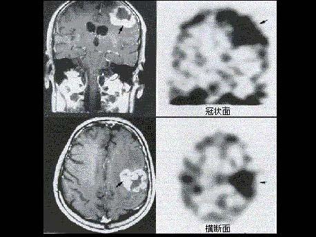 [单选题]男性患者恶性脑肿瘤术后6年复查,有放疗病史,无明显症状,行MRI及99Tcm-ECD脑血流灌注显像,后者提示局部脑血流减低,行201Tl脑显像如图,诊断是()。A . 箭头示手术瘢痕形成B . 箭头示液化坏死区C . 箭头示肿瘤复发D . 箭头示肿瘤脑转移E . 以上都不是