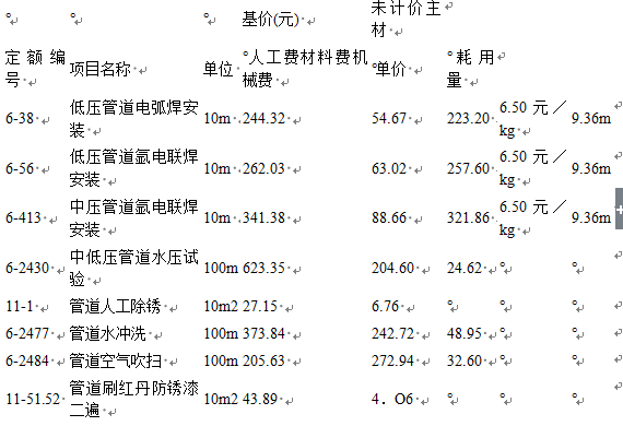 4.φ325×8碳钢管道安装工程定额的相关数据见表3-8。