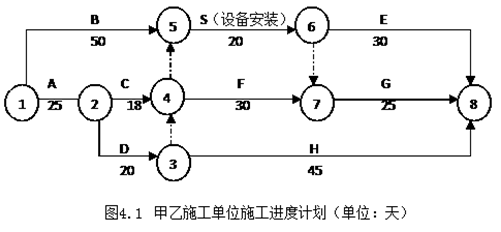 [问答题]某工程,建设单位通过招标与甲施工单位签订了土建工程施工合同,包括A~I共9项工作,合同工期200天;与乙施工单位签订了设备安装施工合同,包括P、Q共2