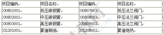 3.相关分部分项工程量清单统一项目编码见下表: