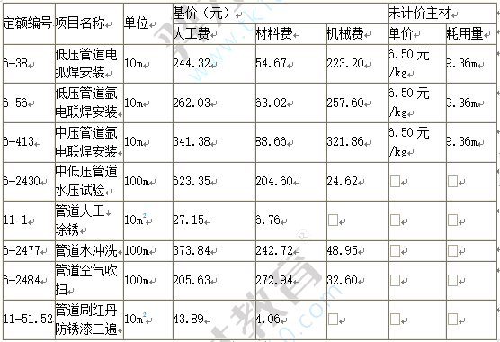4.φ325×8碳钢管道安装工程定额的相关数据见下表: