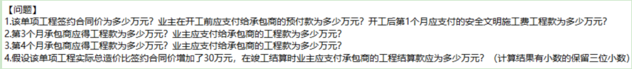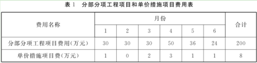 [问答题]某建设项目,业主将其中一个单项工程通过工程量清单计价方式确定了中标单位,双方签订了施工合同,工期为6个月。每月分部分项工程和单价措施项目费用见下图:总