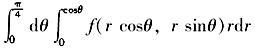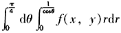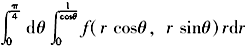 若D是由y=x,x=1,y=0所围成的三角形区域,则二重积分在极坐标下的二次积分是(  )。[2012年真题]