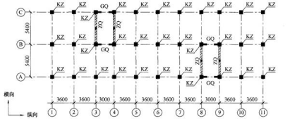 [单选题]某抗震设防烈度为6度的底层框架—抗震墙多层砌体房屋的底层框架柱KZ、砖抗震墙ZQ、钢筋混凝土抗震墙GQ的布置如图4-6所示,底层层高为3.6m。各框架