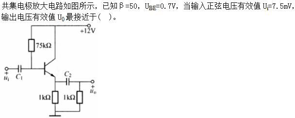 [单选题]A.1.5VB.-0.7VC.-15.6mVD.7.5mV
