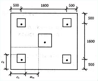 [单选题]已知承台有效高度h0=500mm,所采用混凝土抗拉强度设计值ft=27MPa,其他条件如图4-8-14所示。桩柱尺寸为:桩400mm×400mm;柱4