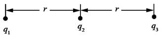 真空中有3个带电质点,其电荷分别为q1、q2和q3,其中,电荷为q1和q3的质点位置固定,电荷为q2的质点可以自由移动,当三个质点的空间分布如图7-1-1所示时,电荷为q2的质点静止不动,此时如下关系成立的是( )。[2014年真题]