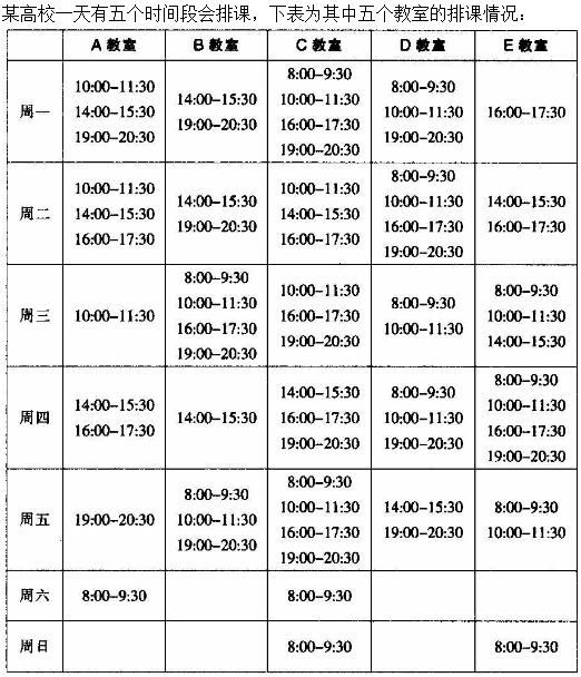 [单选题]周一到周日,下列教室的使用率从高到低排列正确的是:A.E教室>D教室>C教室>A教室B.A教室>C教室>B教室>E教室C.D教室>E教室>C教室>B教