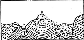 [单选题]读我国某地地质构造剖面图,回答题。根据图中判读,C处应为()。查看材料A.向斜B.背斜C.断层D.倾角