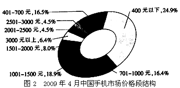 [单选题]根据下面材料回答问题。下列说法正确的是( )。Ⅰ.2009年4月1001~2000元的手机市场的份额比701~1500元的手机市场的份额多Ⅱ.200