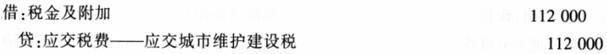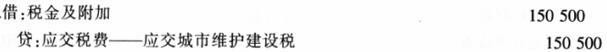 增值税1100000元,城镇土地使用税200000元,消费税500000元,土地增值税350000元,城市维护建设税税率为7%,下列关于城市维护建设税的处理中,正确的是()。