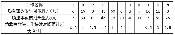 [案例分析题] 某工程项目合同工期为20个月,施工单位提交的施工进度计划如图3-6所示(时间单位:月),各项工作均匀速施工。为有效控制工程施工质量,咨询工程师对各工作进行了初步风险分析,风险对项目产生的影响见表3-35。