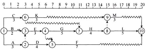 [问答题,计算题] 某工程项目合同工期为20个月,施工单位提交的施工进度计划如下图所示(时间单位:月),各项工作均匀速施工。为有效控制工程施工质量,咨询工程师对各工作进行了初步风险分析,风险对项目产生的影响见表14-10。